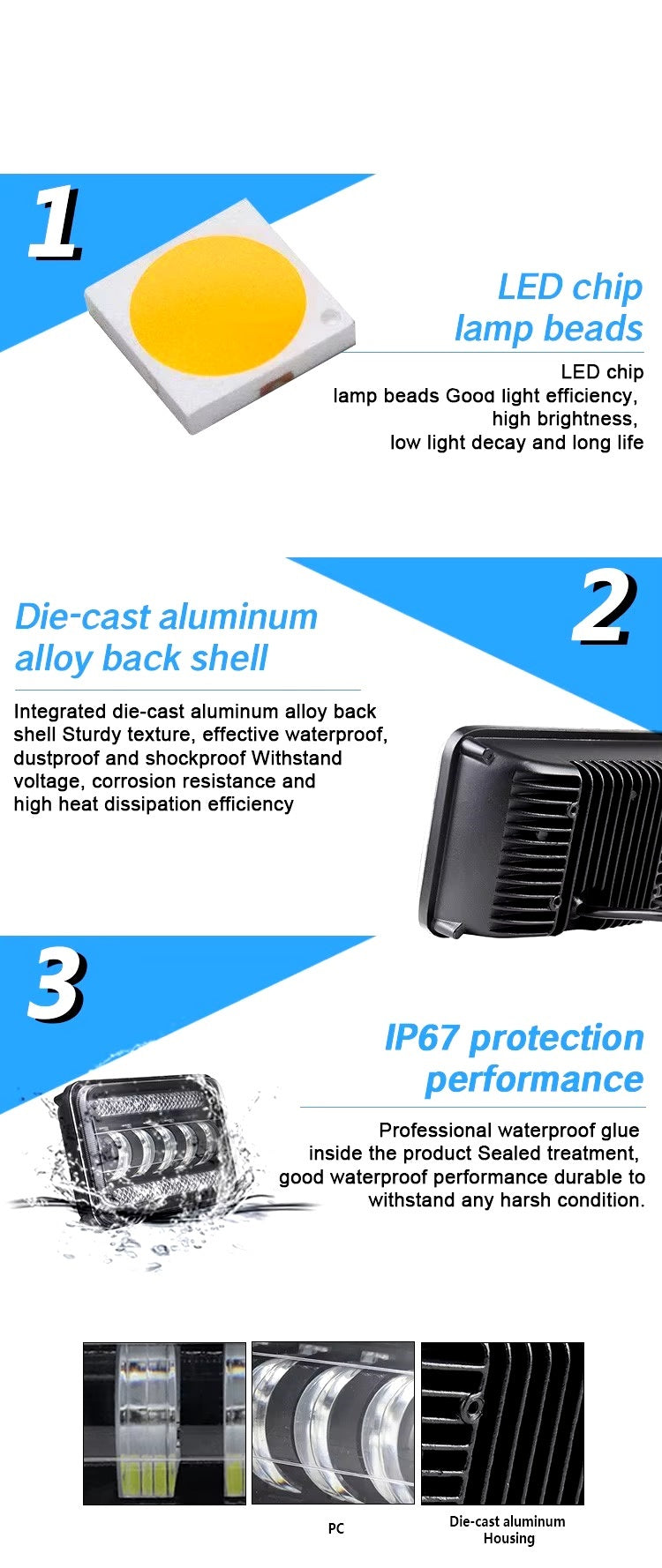 Високомощен и издръжлив LED фар с ниска консумация на енергия. Подходящ за различни видове автомобили,джипове,камиони.
