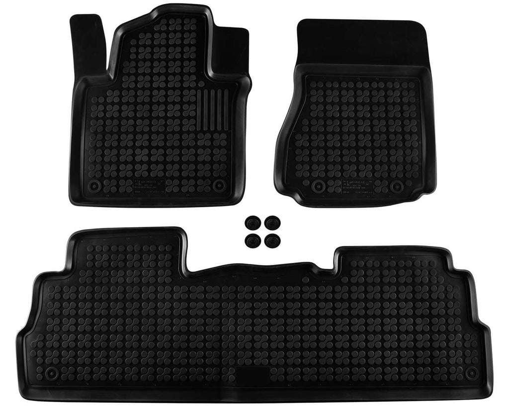 Комплектът включва 3 части, оформени така, че да следват точно линиите на пода в автомобила. Монтажът е лесен и сигурен – без нужда от допълнителни корекции, като гарантира стабилно фиксиране по време на път.