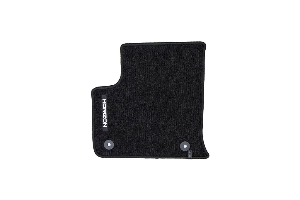 Изработени от мокет Horizon с плътност 535 г/м², стелките осигуряват мекота и приятно усещане при допир, като същевременно намаляват шума в купето. 🌿