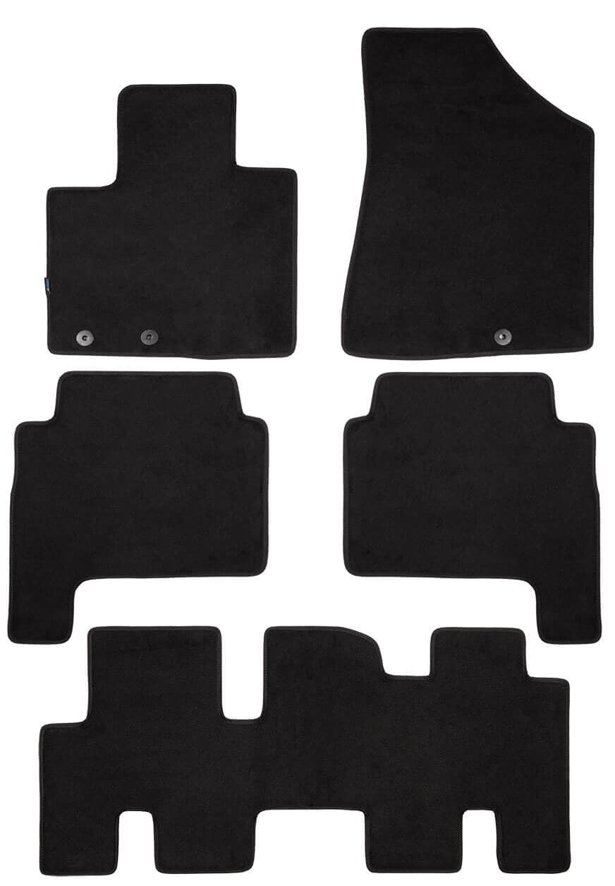 Мокетни стелки Petex за Kia Sorento (2009-2012, 7 места), 5 части, черни, материя Style