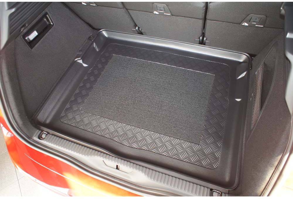 Тази стелка е изработена по индивидуална форма за багажника на Citroën C4 Picasso II VAN (от 07.2013), с конфигурация с 5 места и долен багажник без допълнителна вложка. Изключително устойчива и лесна за поддръжка, тя защитава ефективно тапицерията от влага, кал, разливи и механични повреди.