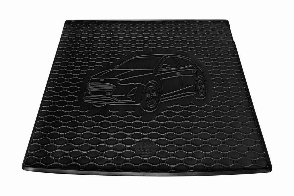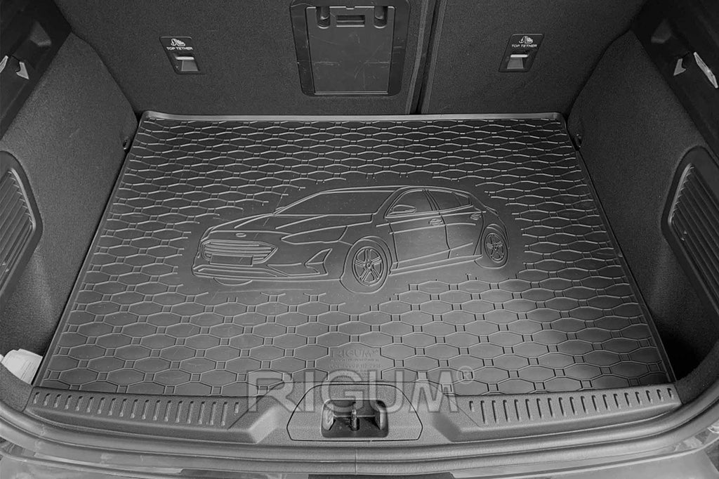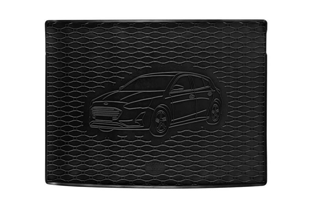 Гумена стелка Rigum за багажник за Ford Focus хечбек след 2018 година, с щампа на автомобила, черна