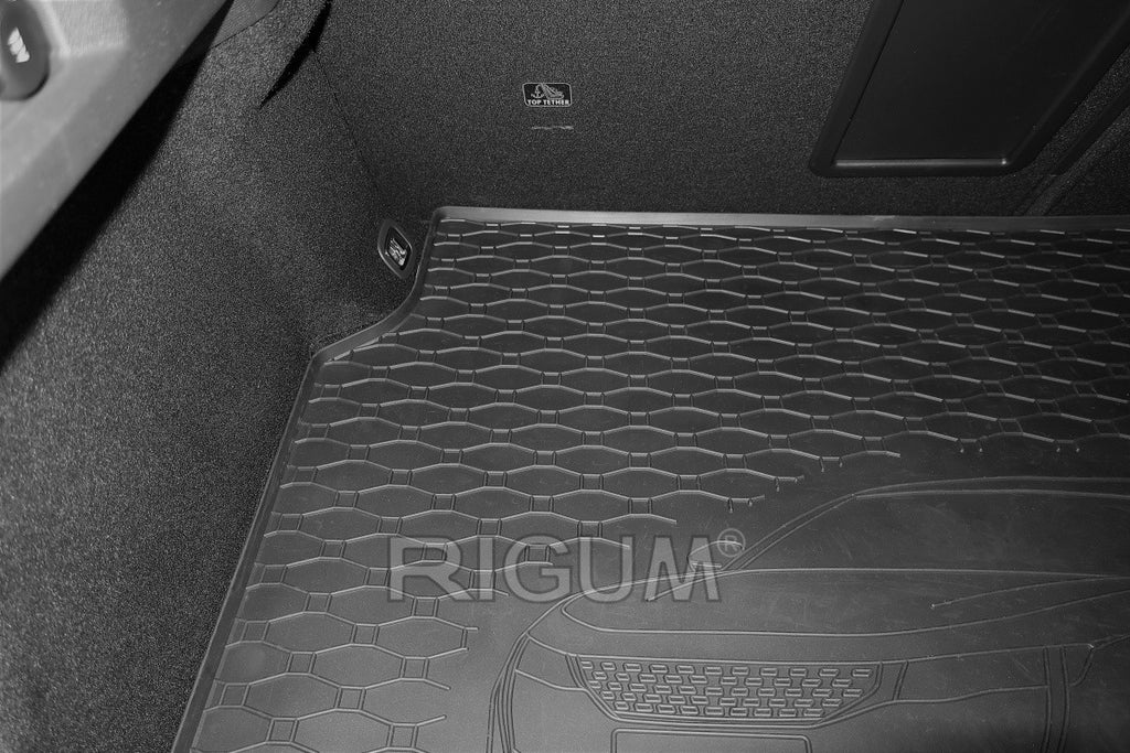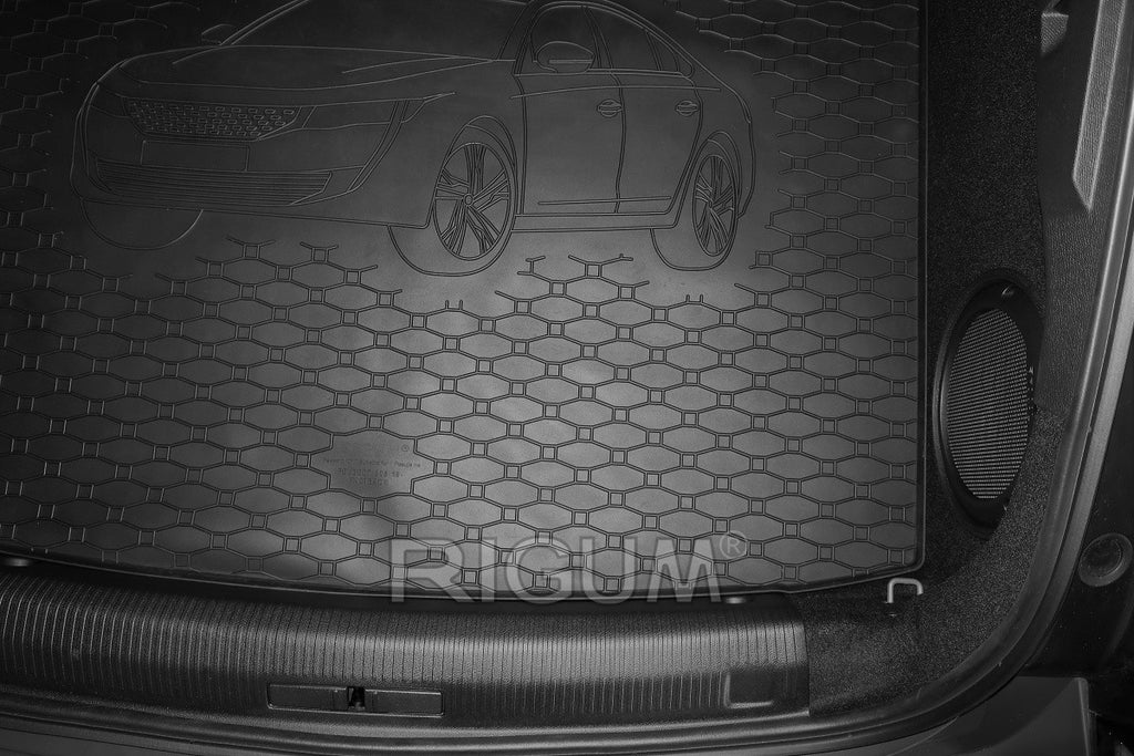 Гумена стелка Rigum за багажник за Peugeot 5008 след 2017 година, с щампа на автомобила, черна