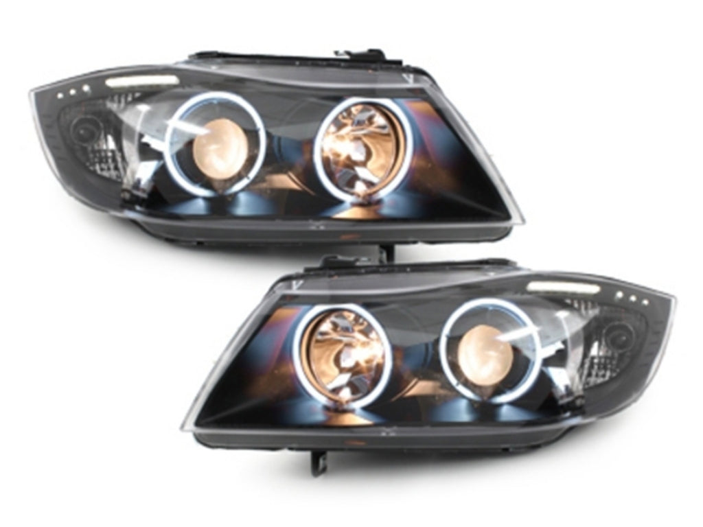 Фарове подходящи за BMW 3 Series E90 E91 (03.2005-08.2008) с Angel Eyes CCFL - Черни